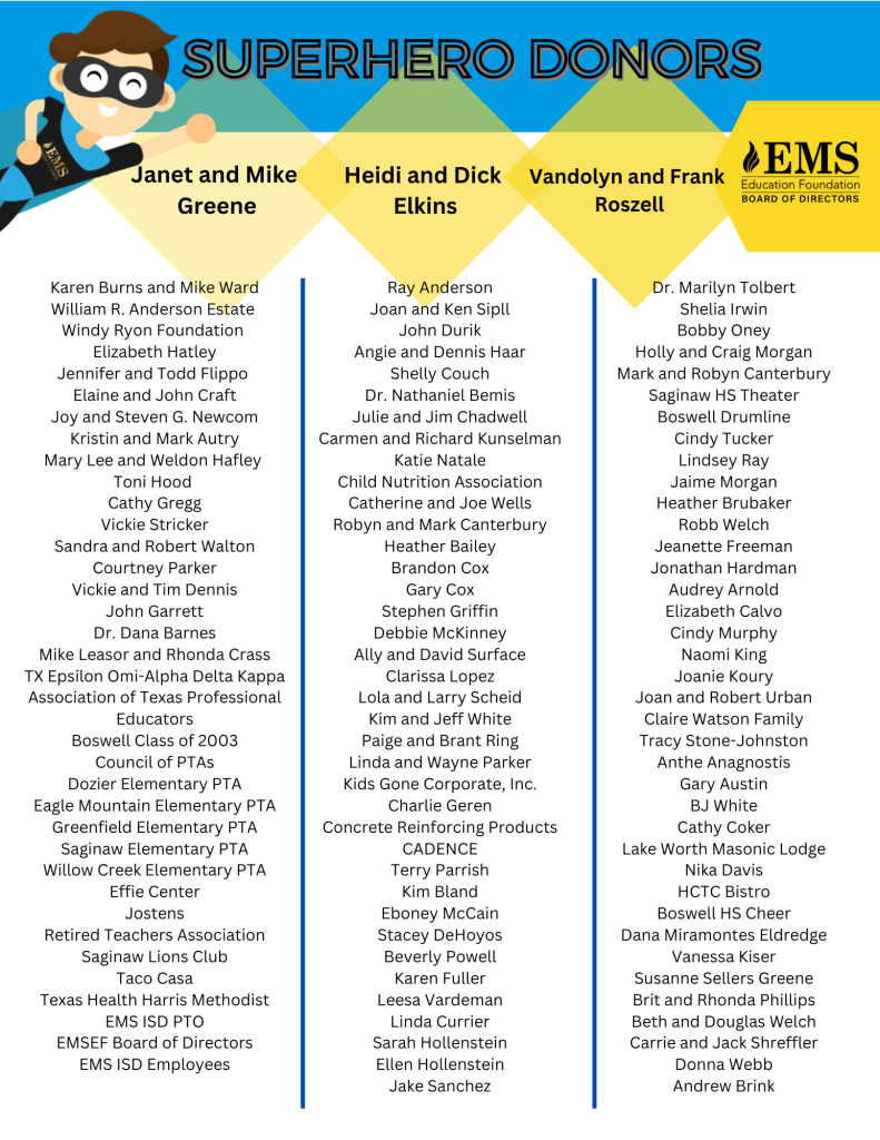 Many EMSISD alumni and special groups contribute together to honor named memorial and honorary scholarships.